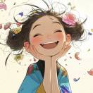 随着湖边场景逐渐弥漫出幻境般的花瓣飞舞效果,镜头从环绕角色的中景切换到从脚部缓缓向上的摇镜头。女子慢慢把头转过来,微笑