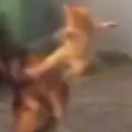 一位3岁小男孩手持加特林,对着前方的巨型怪物射击并击倒了对方