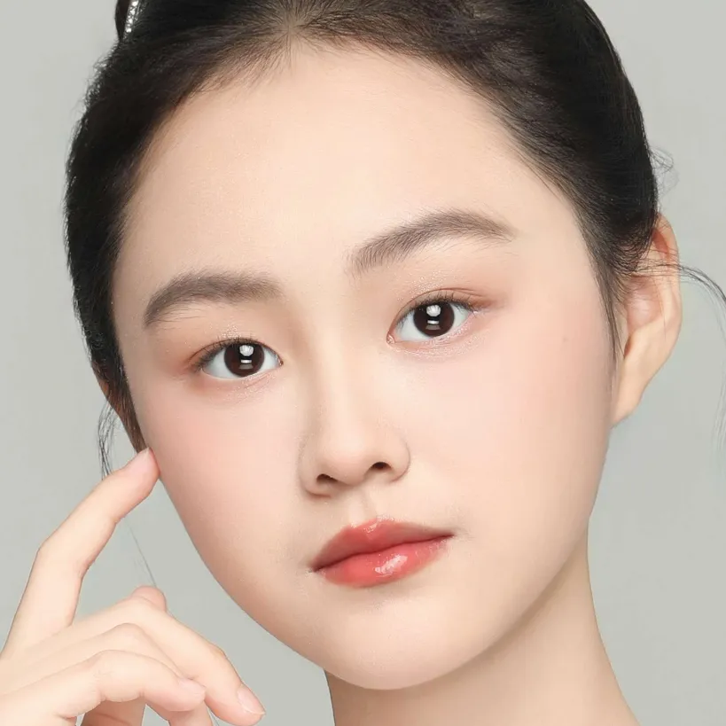 漫步在公园小路上,镜头从侧面环移并拉近,聚焦到正面脸部时放慢镜头,眨眼1次