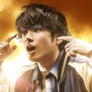 一个小男孩正在桌子上拿着水杯喝水,旁边小狗对着他笑