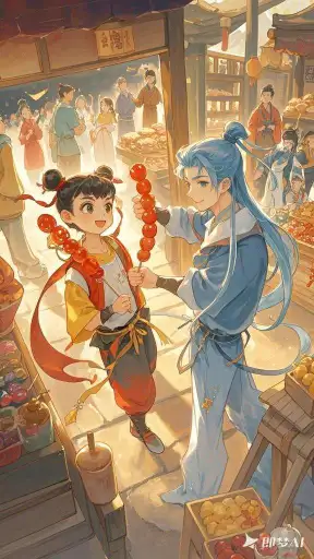 在那微风轻拂的云端,哪吒和敖丙并肩而立。哪吒脸上洋溢着俏皮的笑容,手中变出一朵绚丽的云彩花,轻轻递到敖丙面前。敖丙微微一愣,随后眼中满是温柔与惊喜,接过云彩花,嘴角上扬。他们的目光交汇,仿佛时间都在这一刻静止,周围的空气都弥漫着甜蜜的味道。哪吒拉起敖丙的手,一起踏上风火轮,在天空中划出一道道美丽的弧线,留下串串欢快的笑声。