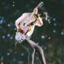 一个人在颠倒的城市街道中狂奔,此时天空中乌云密布