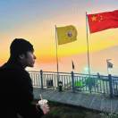 照片里的男人双手平举,然后向前合掌一拍,镜头又近到远,从男人的指尖出现电弧并且射出一道蓝紫色的电光炮