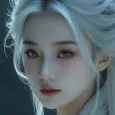 有一个人,一只巨大的毛茸茸的白狼从那个人身后走近,并在他们附近停下,露出温和的表情。(效果类似《暮光之城》中的狼人)