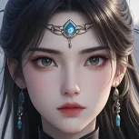 镜头从远景快速拉近,展现出一片阴森诡异的荒野,狂风呼啸,飞沙走石。镜头平移,聚焦在一位身姿矫健的侠女身上,她目光如炬,神色冷峻,一头乌黑长发在风中肆意飞舞。