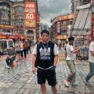 哪吒在西湖坐船,喝咖啡,风景很不错