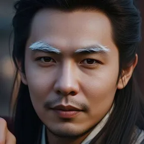「C4D渲染未来学堂教师,身着深蓝色传统长袍配黑色宽腰带,橙色回纹刺绣腰带扣,站立全息投影讲台前授课;双手穿戴外露机械结构的高科技教学手套,蓝色发光能量脉络连接悬浮教案光屏,手背全息图腾实时生成三维古建筑模型,手腕模块展开激光教鞭与粒子板书装置;背景为赛博朋克教室,全息水墨楼阁投影与霓虹数据流在紫色光雾中交错,冷色调机械荧光穿透长袍暖色刺绣,动态光轨环绕量子黑板装置,传统文化符号与机甲教学工具在8K超写实渲染下呈现精密齿轮传动与布料织锦细节」