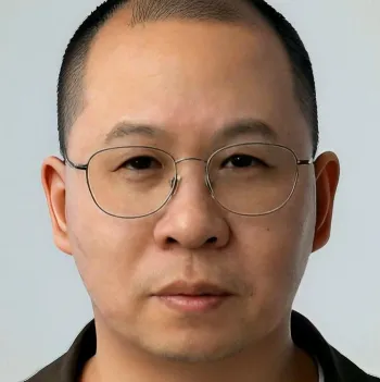 广角镜头:男人脖子戴红色领结,穿着黑色西服骑蓝色复古自行车穿越城市公园,两脚蹬在脚踏板上。车篮装有法棍面包,路边盛放郁金香,背景有孩童放风筝。动作流畅,黄昏金色光线。