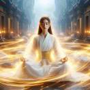 无人机视角穿过金色云层,汉白玉天门在晨光中显现,蟠龙石柱缠绕发光锁链,天兵虚影持戟列队走出云雾,仙鹤群飞过镜头触发羽毛转场
