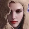 有一个人,一只巨大的毛茸茸的白狼从那个人身后走近,并在他们附近停下,露出温和的表情。(效果类似《暮光之城》中的狼人)