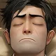 镜头从一张办公桌前缓缓上升,拍摄到办公桌上电脑后方的人,人身后的办公室内内正在燃烧着熊熊大火,一些废纸在屋内飘动。随着镜头移动,摄像机聚焦于电脑前的人,可以看见人后方虚化的房屋中的火焰,坐在电脑前的人面部被电脑的屏幕光照亮,表情自然,面带微笑地敲击键盘,和后方的混乱形成对比。