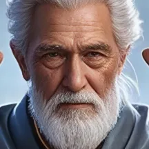 四周空间五彩斑斓的能量涌动,符文缭绕,老者周身五彩斑斓的天地能量向着符文汇聚,老者周身的符文光球闪动着光芒围绕着老者转动,图片风格为写真