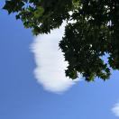 飞机在夕阳下从右向左飞行,男人坐在旁边的石头上边抽烟边注视着飞机。