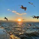 手指在空中画圈,飞机也随着画圈在空中盘旋转圈飞,海浪拍打着石头,衣裙飘飘,3秒后美女也飞上天空飞到飞机上,然后向前飞行