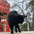 男孩看到草丛里的小猫