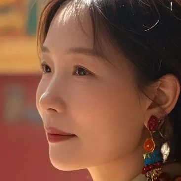 藏族女性在转经廊双手合十凝视光源,雕花窗投射的光束中浮动着香火轻烟,铜经筒氧化层呈现翡翠绿与赭石色渐变,壁画金粉在逆光中微弱闪烁,中焦镜头刻画氆氇呢长袍的织纹与天珠项链,面部高光如古典肖像画般神圣