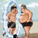 一个穿着红色高叉比基尼的美女,在沙滩上做着高难的的瑜伽动作