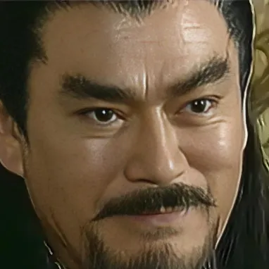 狂风呼啸的山顶之上雄霸表情狂妄霸气穿着华丽的黑色龙纹长袍背后披着长长的红色披风随风飘逸伸出手指指着镜头特写镜头纪实画面