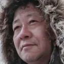 瞭望拍摄长白山天池瀑布,背景雾凇。