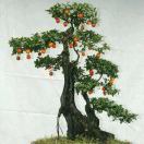 一盆苍劲的松树盆景,主干嶙峋扭曲,枝干茂盛,一个斜飘枝向左下方斜出,云片造型漂亮,树形写真首发,造型古拙,现实百年盆景的艺术美和松树的精神,镜头从正面移动变幻到右上方,全面展示美丽传神的盆景,用漂亮的紫砂盆载盆景,要绝对写实手法,刻画细节,高清画质