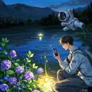 帮我生成一个视频:星辰闪烁,萤火虫飞舞,大树周围的吊灯在闪烁这,月亮在缓缓升起。