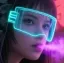 黑客少女半蹲在潮湿的防火梯上,透明LED面罩下透出她警惕的眼神——面罩内侧不断刷新着加密数据流和心率警报,蓝绿色代码在她苍白的脸颊上流动。她的机械右手发出细微的伺服电机嗡鸣。