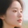 帮我生成一个视频:美女瞬间飞上苹果树再高一层的树叉上,坐在树叉上摘下一个大苹果吃。比例1:1