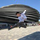 [上升] 女子手接卡,收回,男子给卡,松手,收回手