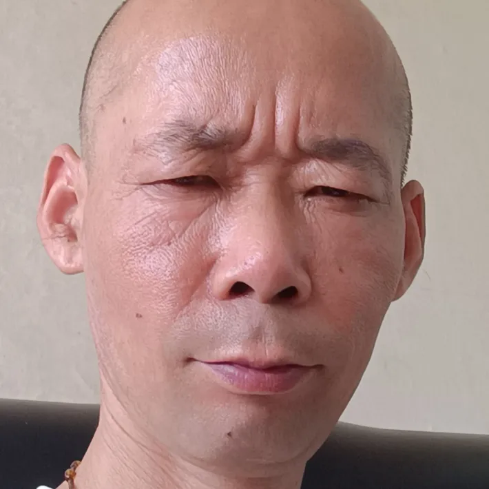 画面中一个光头男性身穿牛仔坐在中式餐桌旁看向镜头,在他身旁,是一个留着金发身穿红色吊带的欧美女性微笑着看向镜头。