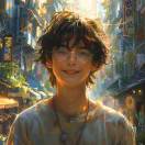 ,经过人物的面部,最终停留在人物头顶上方的吊灯。”