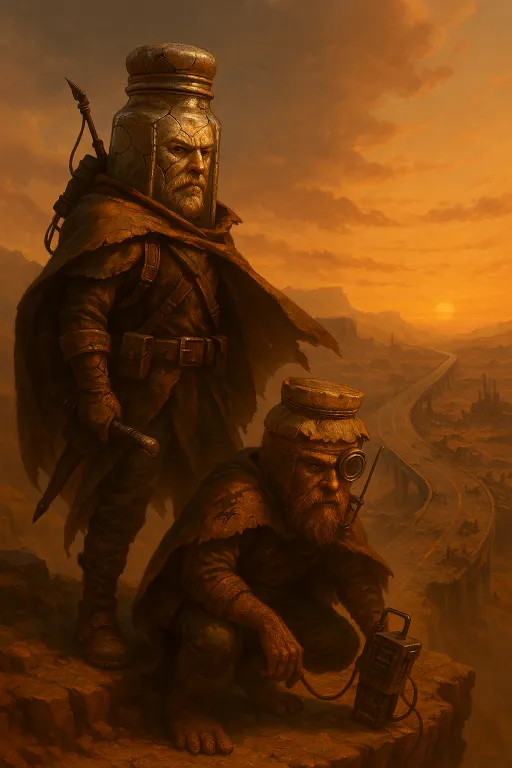 两个人在向远处眺望,风吹动斗篷,镜头环绕