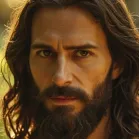 分镜1: 一位身着朴素长袍的男子跪在山顶的岩石上闭目祈祷。月光穿过云层照亮他的轮廓,微风轻轻拂动发梢。镜头保持中景构图,自然光照下呈现出宁静致远的氛围。
