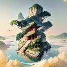 镜头平移,展现带有花卉图案的服饰,人物微微转动身体,展示妆容细节,整体动作自然流畅