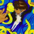 画面漂浮着一座现代中式极简风和未来主义结合的单层空间体,星轨移动,斗转星移,背景有一颗巨大的星球和星轨在缓缓公转和自转,斗转星移,[固定镜头]